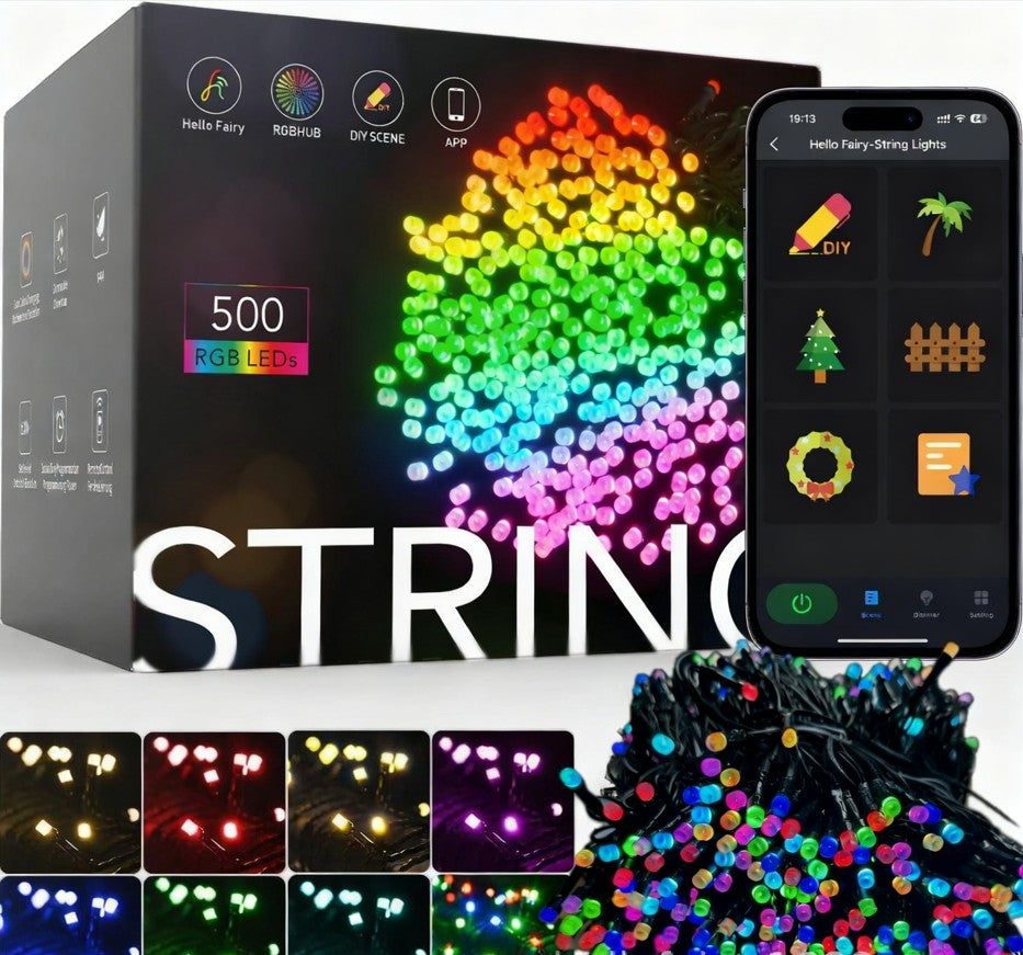 • Group & DIY Control: Sync multiple strings and create personalized scenes with DIY editing and group scheduling.