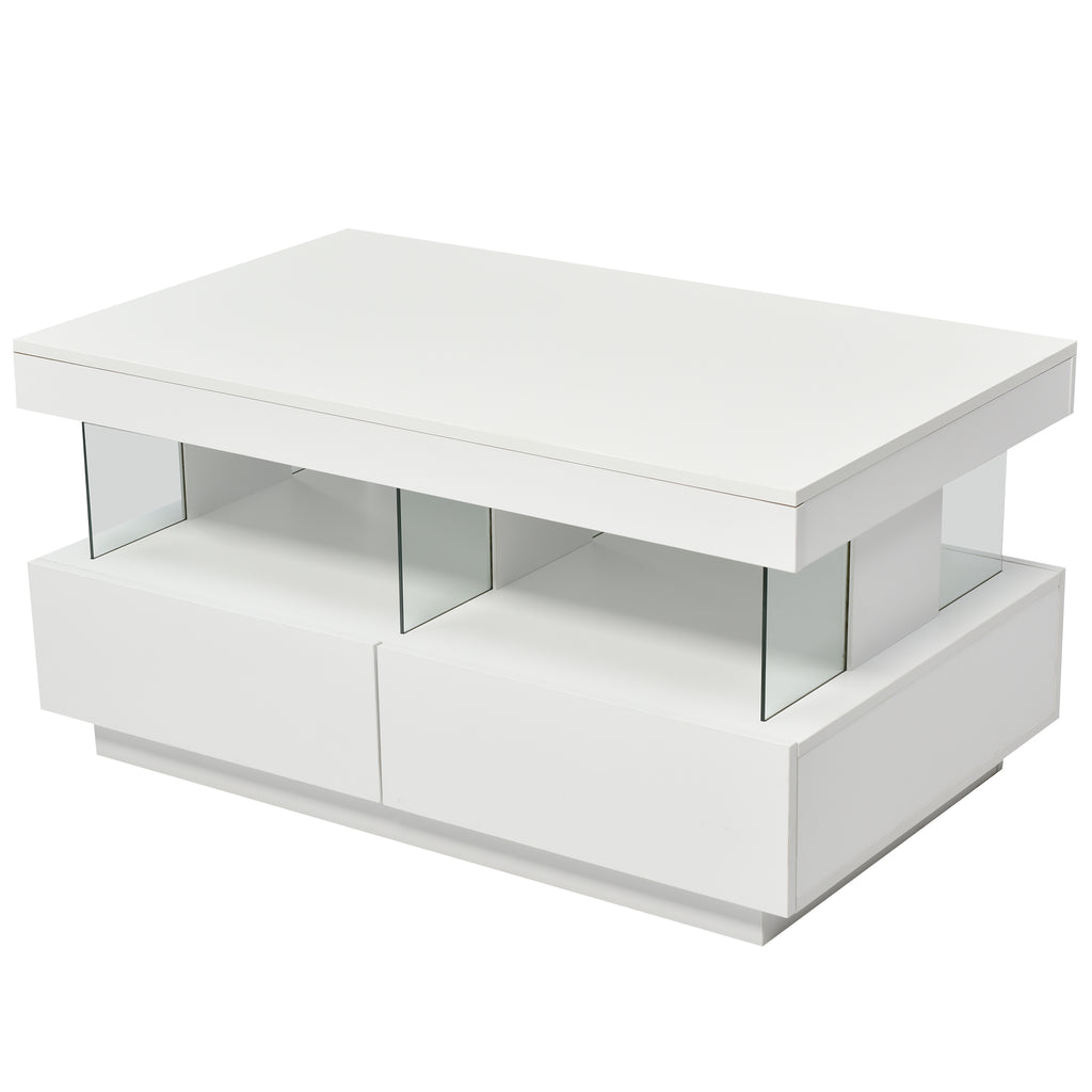 Modern Coffee Table for Living Room 39 Inch 16 Color LED Lights High Gloss Coffee Table with 2 Drawers and Open Storage Space